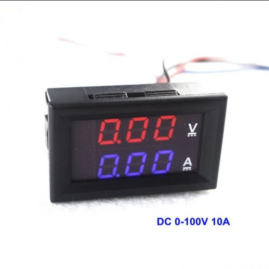 - 1 x Digital Voltmeter Ammeter DC 0-100V 10A Dual LED Red Blue Monitor Panel