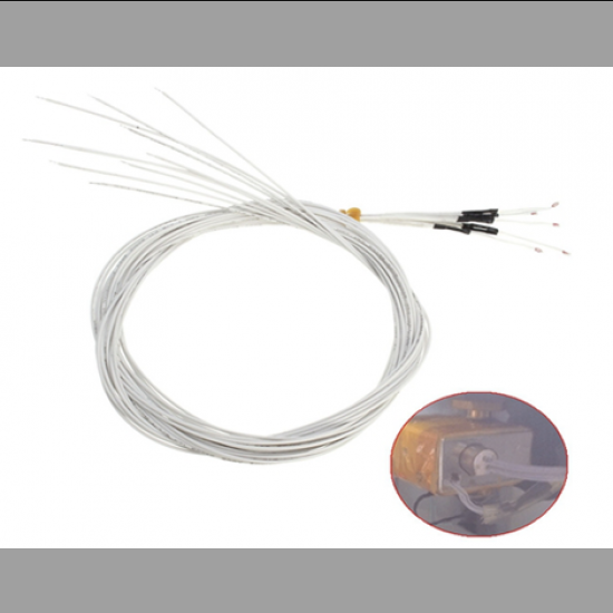 100K Ohm NTC Thermistors with 1m cable for 3D Printer is a temperature sensor in which the thermistor chip is welded with leads by alloy soldering process, then partially treated by glass sealing. The element has a bead form with good stability, small size and rapid response.