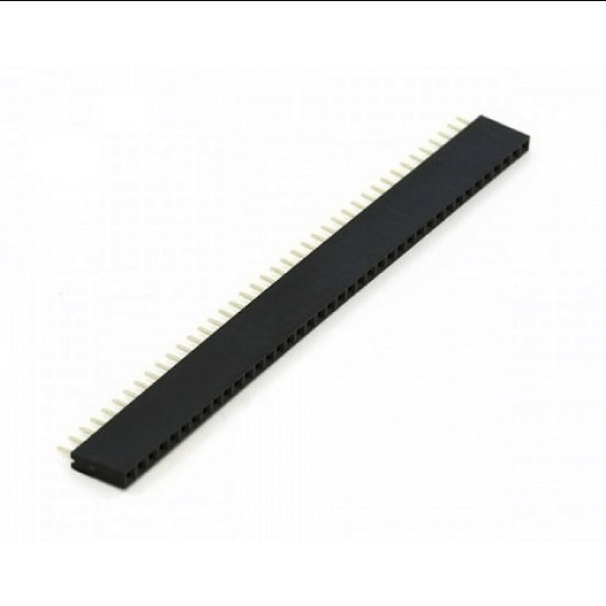 It is 2.4 mm Female Header Berg Strip 1x40 Pin with Single row of 40-holes, female header. Can be cut to size with a pair of wire-cutters. We use them extensively in the development boards and LCD interfacing boards. They mate very well with break away headers.m (0.1 inch) pitch. The strip can be cut to any desired length depending on the requirement.