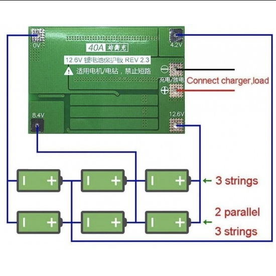- 1 x 3 Series 40A 18650 Lithium Battery Protection Board.