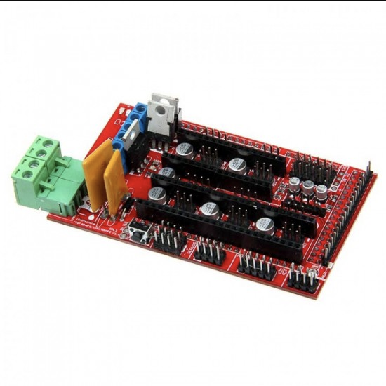 3D Printer Controller Board RAMPS 1.4 Arduino Mega Shield is an all-in-one design to fit the necessary components for a 3D printer into one plug in shield for an Arduino MEGA.