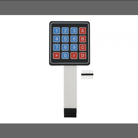 Punch in your secret key into this numeric matrix keypad. 4x4 Matrix Keypad - Membrane type keypad has 16 buttons, arranged in a 4x4 grid. It's made of a thin, flexible membrane material with an adhesive backing (just remove the paper) so you can attach it to nearly anything. The keys are connected into a matrix, so you only need 8 micro controller pins (4-columns and 4-rows) to scan through the pad.