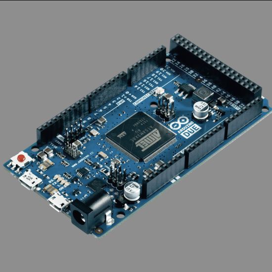 The Due is Arduino's first ARM-based Arduino development board. This board is based on a powerful 32 bit Cortex M3 ARM microcontroller made programmable through the familiar Arduino IDE. It increases the computing power available to Arduino users keeping the language as compatible as possible so that many programs will be migrated in a matter of minutes!