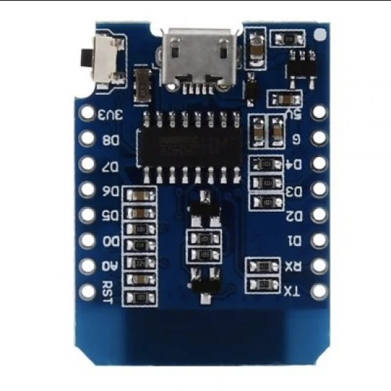 This is D1 Mini V2 NodeMcu 4M Bytes Lua WIFI Internet Of Things Development Board Based ESP8266, it is a mini WIFI board based on ESP-8266EX. 11 digital input/output pins, all pins have interrupt/PWM/I2C/one-wire supported(except D0) 1 analog input(3.3V max input) and a Micro USB connection.