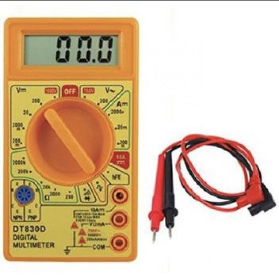 Digital Multimeter DT830D Yellow Color - 1000V DC/750V AC comes with 1M Ohm Impedance is Standard Diagnostic Tool to Measure Two or More Electrical Values Such as Voltage, Current and Resistance. It uses digital and logic technology using integrated circuit technology to offer additional test capabilities.