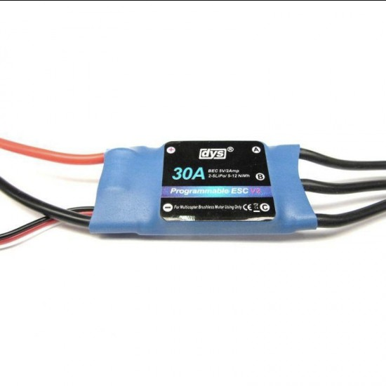 This is a DYS SimonK 30A Brushless Speed Controller ESC For Drone, Multi-copter Brushless Motor Speed Controller with a running current of 30A. The power input uses extreme low output resistance greatly enhance the power stability and has the protective effect on the battery. Separately voltage regulator IC for the microprocessor. providing the good anti-jamming capability.