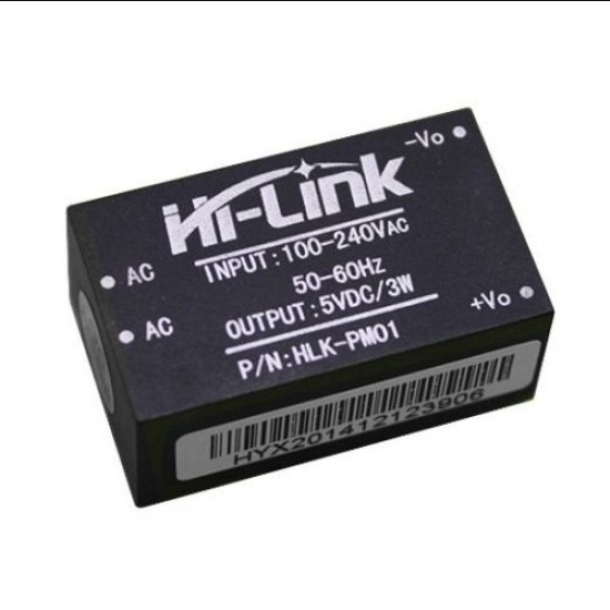 Hi-Link AC-DC Power Module HLK-PM01 230V to 5V /3W SMPS Module (Hi-Link) is PCB mounted plastic enclosed isolated switching step-down power supply module. It can supply 5V DC from 120V AC - 230V AC and has a power rating of 3 Watt. This makes it perfect for small projects that needs a 5V supply from Mains.