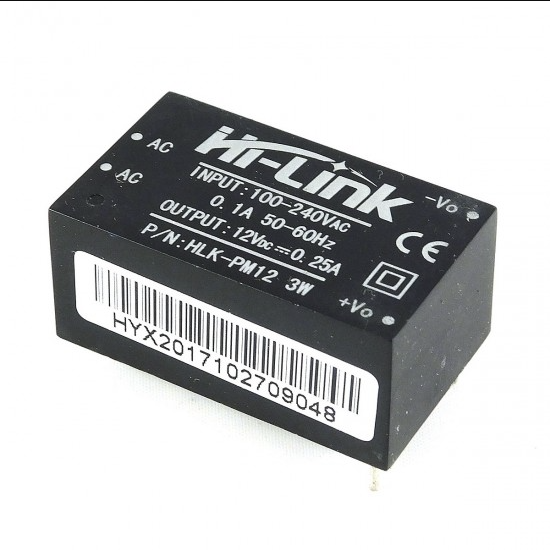 Hi-Link AC-DC Power Module HLK-PM12 230V to 12V /3W is a ultra-thin and ultra-small power module with Low ripple and low noise output. It has Output overload and short circuit protection with high efficiency and low power consumption.