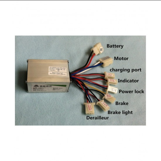This Motor Controller for MY1016 24V 250W includes attachments for the motor, accelerator, brake, battery, battery charging, brake light, power lock. It is used to operate My1016 24V 250W motor.