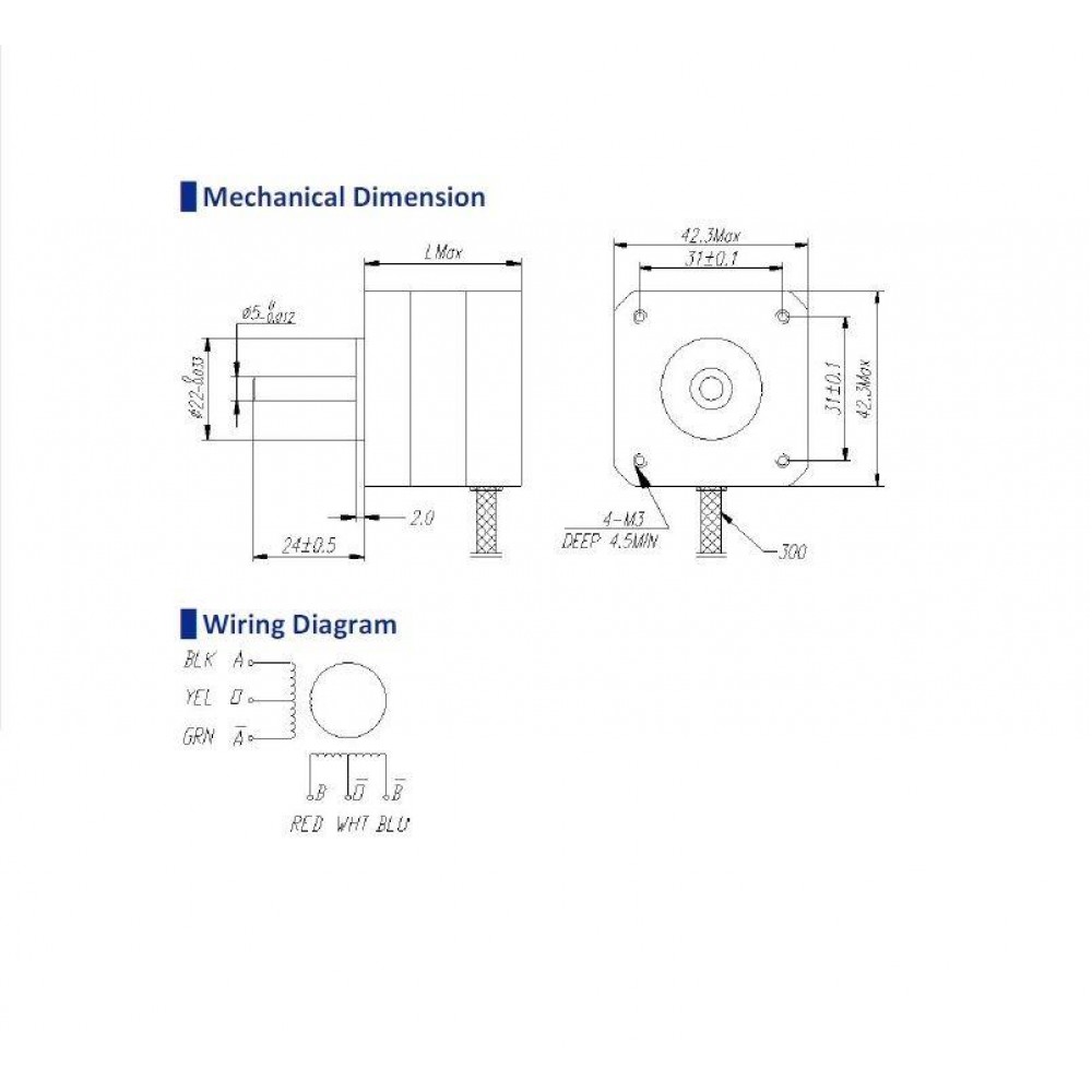 NEMA17 1.6kgcm 6 wire Unipolar Stepper Motor