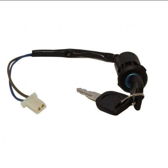 Power Lock Ignition Key Switch - 2 pin has 2 Female Pin, Plastic Make. This plastic ignition key switch features a 2 pin male connector (white) and includes 2 keys.