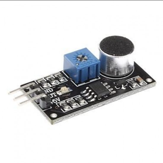 Sound Detection Sensor Module - Analog Type detects whether sound has exceeded a threshold value. Sound is detected via microphone and fed into an LM386. The sound level set point is adjusted via an on board potentiometer. When the sound level exceeds the set point, an LED on the module is illuminated and the output is sent low.