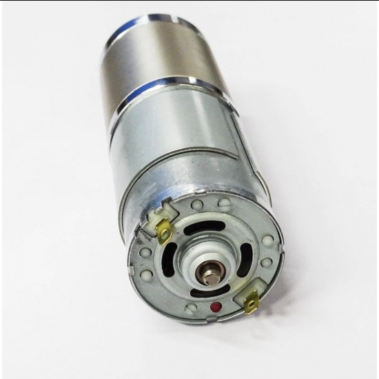 This is 12V DC motor which has a gearbox of 50 mm diameter. The planetary type gearbox of this motor has a metal gears and a center shaft. The Shaft of the motor is loaded with bearing for wear resistance and smooth operation.