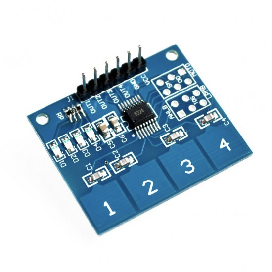 - 4 Channel Capacitive Touch Sensor Module uses the touch-sensing IC TTP224 to sense the touch input thus making it easy to add capacitive touch input to your project. The touching detection IC is designed for replacing traditional direct button key with diverse pad size. The module has 4 touch pads. Power the module with 2.4 ~ 5.5V DC and the touch pad is all active to sense the input.