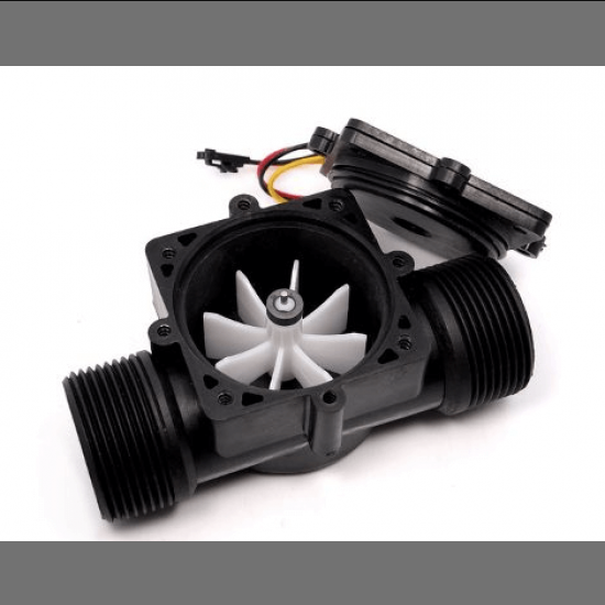 Water Flow Sensor YF-S201 1/2 inch sits in line with the water line and contains a pinwheel sensor to measure how much water has moved through it. There is an integrated magnetic Hall-Effect sensor that outputs an electrical pulse with every revolution. YFS201 hall effect water flow sensor has only three wires and it can be easily interfaced between any microcontroller and Arduino board. It requires only +5V Vcc and gives pulse output, the sensor needs to be tightly fitted between water pipeline.