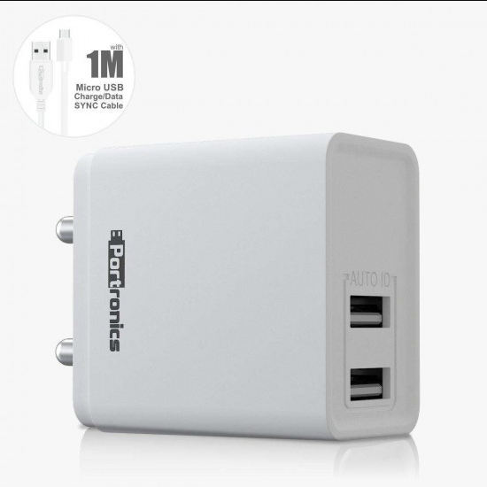 | Product Name | Portronics Adapto 648 POR-648, 2.4A Quick Charging Dual USB Port with 1M Micro-USB Charging Cable (White) |