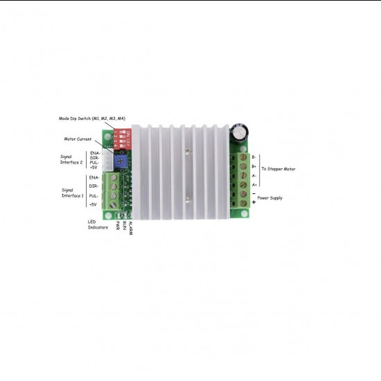 TB6600 stepper motor driver provides maximum 4.5A output current. TB6600 comes with output sort-circuit protection, Low-Pressure shut-off, Overheating parking and over-current protection. Output current is infinitely adjustable to meet various applications.
