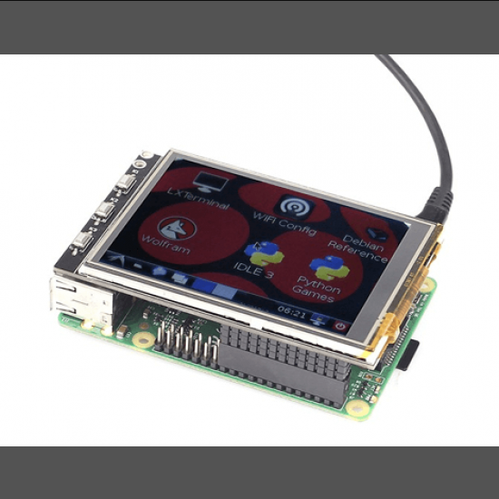 Waveshare 3.2 inch TFT Resistive Touchscreen Display for Raspberry Pi is an ideal alternative solution for HDMI monitor. It supports any revision of Raspberry Pi and it can be directly plugged on to the RPi board, combined with the portable power this module is a convenient Men-Machine interface for Raspberry Pi.
